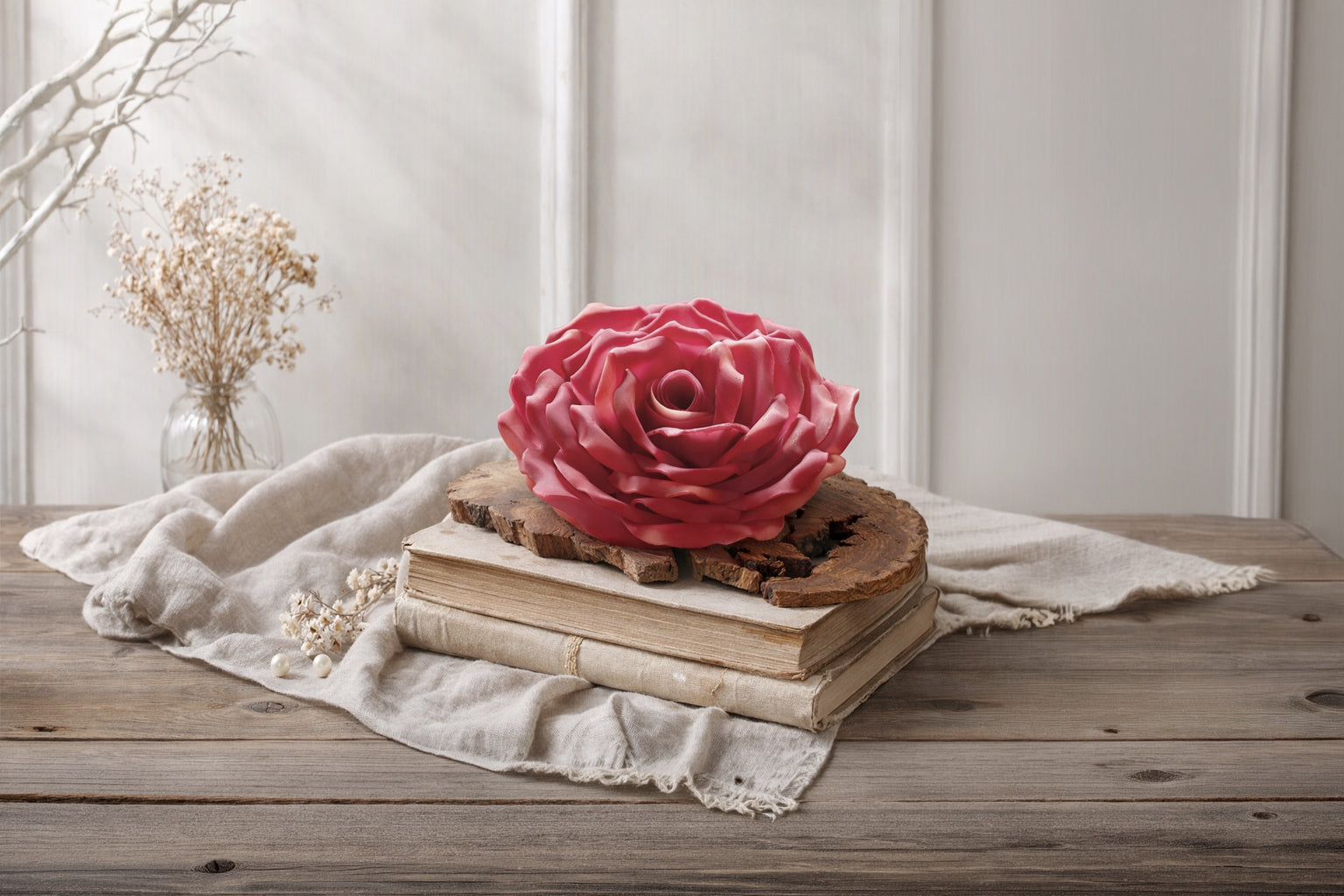 La délicatesse d’une rose, façonnée comme un objet décoratif unique, fixée sur un bois d'olivier connu pour ses qualités de longévité et son style typiquement Provençal.